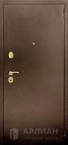 Металлическая дверь антик медь с отделкой под дерево и усиленным листом стали №6