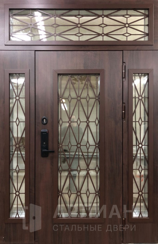 Входная стальная дверь с фрамугой сверху №35