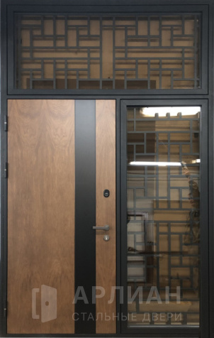 Парадная металлическая дверь с остеклением фрамугой №15