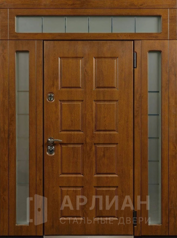 Металлическая входная дверь в коттедж с верхней фрамугой №10