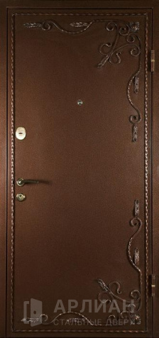 Входная дверь для частного дома с ковкой и зеркалом №69