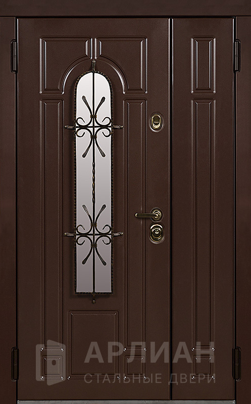 Фото №2 «Металлическая двустворчатая дверь со стеклом и кованой решеткой №15»