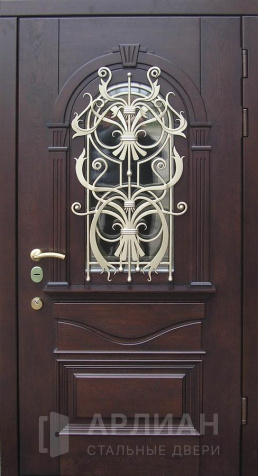 Входная арочная дверь с витражом и решеткой №419